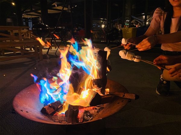 焚き火台は3台設置し、1台は時間帯によってレインボーに変化!